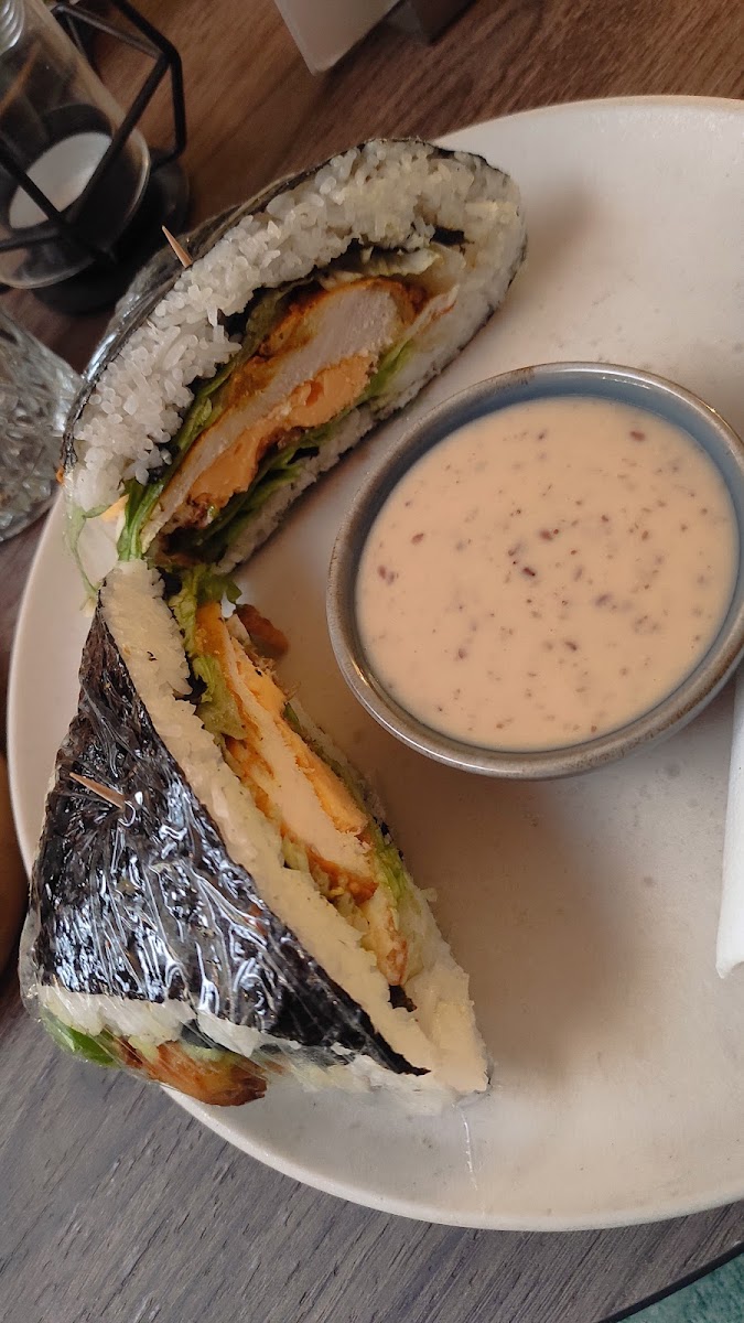 Lunch here leans on light, inventive dishes with an Asian twist — rice sandwiches with chicken or tofu and avocado paired with sesame sauce are favorites among regulars. The vegan and vegetarian options, like the tofu rice sandwich and vegan banana bread, are notably satisfying and suit a range of dietary preferences, making the spot a reliable pick for those looking for a more health-conscious midday meal.